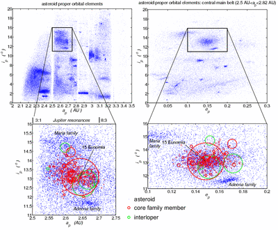 - ^ a b Nesvorný, D.; Broz, M.; Carruba, V. (December 2014). Identification and Dynamical Properties of Asteroid Families. Asteroids IV. pp. 297–321. arXiv:1502.01628. Bibcode:2015aste.book..297N. doi:10.2458/azu_uapress_9780816532131-ch016. ISBN 9780816532131.