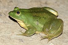 Euphlyctis hexadactylus, also known as the green pond frog, Indian green frog, and Indian five-fingered frog, is a common species of aquatic frog found in Pakistan, India, Bangladesh, and Sri Lanka.[1][2] The nominal taxon likely represents a species complex.[2]