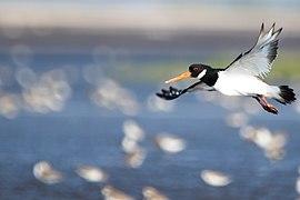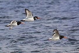 The Eurasian oystercatcher (Haematopus ostralegus) also known as the common pied oystercatcher, or palaearctic oystercatcher,[2] or (in Europe) just oystercatcher, is a wader in the oystercatcher bird family Haematopodidae. It is the most widespread of the oystercatchers, with three races breeding in western Europe, central Eurosiberia, Kamchatka, China, and the western coast of Korea. No other oystercatcher occurs within this area. The extinct Canary Islands oystercatcher (Haematopus meadewaldoi), formerly considered a distinct species, may have actually been an isolated subspecies or distinct population of the Eurasian oystercatcher.[3]