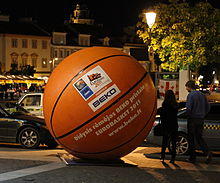 Additionally, from Spring 2011, many of the TV and newspaper advertisements became basketball-oriented. Each of the cities where EuroBasket 2011 would take place received many minor details marking the championship: for example, the trash bins in Panevėžys were repainted to look like basketballs, an abandoned building in Vilnius had its windows covered by flags of the participant nations while balls were drawn on the pavement in some places.