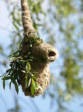 It builds an elaborate hanging nest, formerly used in Central Europe as children's slippers.[5]
