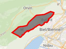It consists of the villages of Evilard and Macolin and the Pré de Macolin area. Macolin (German: Magglingen), lies at 875 m (2,871 ft) on the southeast slope of Magglingerberg. The neighboring municipalities are Biel/Bienne, Orvin, Lamboing, and Twann-Tüscherz.