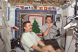 The Expedition 8 crew conducted the first two-person spacewalk at the International Space Station. Unlike previous spacewalks conducted by ISS crews, there was not a crewmember inside the Station as the spacewalkers worked outside. The spacewalk was based out of the Pirs docking compartment; the spacewalkers wore Russian Orlan space suits.