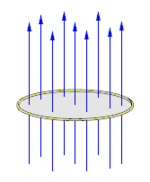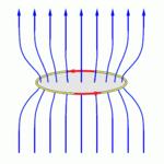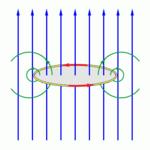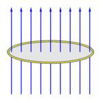 An external magnetic field (blue lines) threads a closed ring made of a perfect conductor (with zero resistance). The total magnetic flux through the ring is equal to the magnetic field multiplied by the area of the surface spanning the ring. The nine field lines represent the magnetic flux threading the ring.