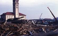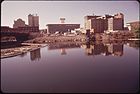 By the 1950s, the core of Downtown Spokane began to empty out due to suburbanization,[17] a trend that was prevalent amongst many American cities during this time.[2] This trend sparked urban renewal discussions in Spokane and in 1959, a group called Spokane Unlimited[17] was formed by local business leaders to try and revitalize Downtown Spokane. The group would hire New York-based Ebasco Services to create an urban renewal plan, which would be released in 1961 and called for the removal of the numerous train tracks and trestles in downtown and reclaiming the attractiveness of the Spokane River[18] in the central business district.[2][17]