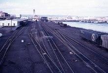 All of the industrialization would engulf and obscure the area from public access and view.[12] The presence of railroads within the downtown core was noted by the Olmsted Brothers in 1908 when they began to develop a master plan for parks in the City of Spokane.[2] As the brothers were planning in the Spokane River Gorge, they skipped the area that would later become the site of Expo '74, sarcastically noting that it had already been partially "improved" (with all the industrial development that was present) and hoped that the City of Spokane would eventually come to its senses and reclaim the area around the Spokane Falls for a park.[13] Spokane would go on to become the site of four transcontinental railroads, including Great Northern, Northern Pacific, Union Pacific, Chicago, Milwaukee, St. Paul and Pacific Railroad,[14][15] as well as regional ones like Oregon Railway.[16] By 1914, Union Pacific had built their own station on the park's site, along with elevated tracks leading up to it.[12] The heart of Downtown Spokane would become a hub for passenger and freight rail transport and remained that way for several decades.[12] By the mid-20th century, the problems of having a large amount of railroads in the middle of the city were beginning to be realized. The elevated railway, warehouses, and other lines leading into the park severely restricted both physical and visual access to the Spokane River and its falls, leading some locals to compare it to the Great Wall of China.[2] Additionally, the high volume of train traffic created a very noisy downtown,[12] and numerous at-grade railroad crossings were causing traffic congestion issues.[2]