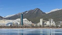 ![]() Heart Mountain and the Cement Plant at Exshaw. Community is east (left) of the plant. | |