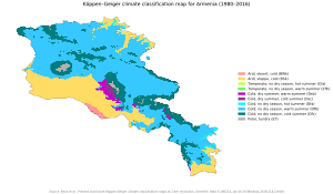 This article incorporates text from this source, which is in the public domain. - ^ a b c d e f g "ENVIRONMENTAL STATISTICS OF ARMENIA FOR 2018 AND TIME-SERIES OF INDICATORS FOR 2014-2018" (PDF).
