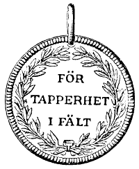 För tapperhet i fält ("For Valour in the Field") and För tapperhet till sjöss ("For Valour at Sea") are two Swedish military medals awarded to officers and soldiers of the Swedish Armed Forces who have—as the medal names suggest—shown valour in the field or at sea in wartime. These two medals, along with the various grades of the Order of the Sword, are the only awards in Sweden that have the designation "Swedish war decorations" (Svenska krigsdekorationer).[2] The medal was instituted by Gustav III on 28 May 1789, during his war against Russia and was meant to complement the Order of the Sword—which was instituted on 23 February 1748 and was awarded for the same purpose—valour in the field or at sea—but only to officers.