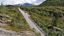 Rørvik Mountain, the trail with the fascinating stone walls and a marvellous view over Haukedalen. Along Råheimsdalen and Eldalen to the Gaularfjellet mountains, you will see a marvellous waterfall landscape that has been landscaped with paths for visitors. From the top of Gaularfjell mountains, hairpin bends wind down to the Vetlefjorden, an arm of the Sognefjorden. The breathtaking contrasts of steep mountainsides, winding roads, and waterfalls are characteristic of Western Norway’s exceptional scenery.[29]