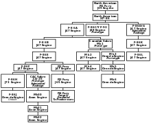 The F-86 was produced as both a fighter-interceptor and fighter-bomber. Several variants were introduced over its production life, with improvements and different armament implemented (see below). The XP-86 was fitted with a General Electric J35-C-3 jet engine that produced 4,000 lbf (18 kN) of thrust. This engine was built by GM's Chevrolet division until production was turned over to Allison.[19] The General Electric J47-GE-7 engine was used in the F-86A-1 producing a thrust of 5,200 lbf (23 kN), while the General Electric J73-GE-3 engine of the F-86H produced 9,250 lbf (41 kN) of thrust.[20]