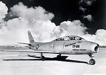 The North American F-86 Sabre, sometimes called the Sabrejet, is a transonic jet fighter aircraft. Produced by North American Aviation, the Sabre is best known as the United States' first swept-wing fighter that could counter the swept-wing Soviet MiG-15 in high-speed dogfights in the skies of the Korean War (1950–1953), fighting some of the earliest jet-to-jet battles in history. Considered one of the best and most important fighter aircraft in that war, the F-86 is also rated highly in comparison with fighters of other eras.[2] Although it was developed in the late 1940s and was outdated by the end of the 1950s, the Sabre proved versatile and adaptable and continued as a front-line fighter in numerous air forces until the last active operational examples were retired by the Bolivian Air Force in 1994.