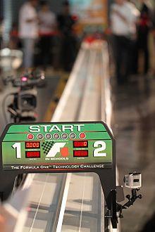 F1 in Schools is an international STEM (science, technology, engineering, mathematics) competition for school children (aged 11–19), in which groups of 3–6 students have to design and manufacture a miniature car out of the official F1 Model Block using CAD/CAM design tools. The cars are powered by CO2 cartridges and are attached to a track by a nylon wire. They are timed from the moment they are launched to when they pass the finish line by a computer.[1]