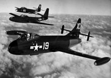 The Vought F6U Pirate was the Vought company's first jet fighter, designed for the United States Navy during the mid-1940s. Although pioneering the use of turbojet power as the first naval fighter with an afterburner and composite material construction, the aircraft proved to be underpowered and was judged unsuitable for combat. None were ever issued to operational squadrons and they were relegated to development, training, and test roles before they were withdrawn from service in 1950.