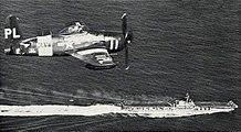 | An F8F Bearcat war bird over Fly Navy Day 2016 | |