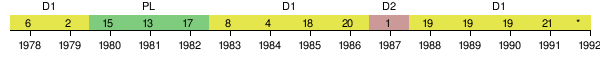 (league)Head coach 1992 1st 18 30 4 9 17 24 53 17 — — Lemish – 5