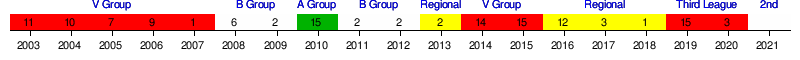 - 15th place in the "A" group: 2009/10