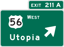 The FHWA typefaces are also used predominantly on road signs in Canada. The province of Ontario used an in-house modified version until the late 1980s that featured slightly different characteristics, such as flat-top numeral 3's and numeral 1's without a serif). The city of Windsor began replacing its Helvetica signs with Highway Gothic in 2018.[11] Peru (under different series labels), Australia and New Zealand (under the Australian Standard AS1744-1975 typeface), Indonesia, Malaysia, Mexico[12] and other countries. Still others use typefaces that are either derived directly from the FHWA series or very similar in appearance. There are a few of them in South Africa, Lesotho, Colombia, the Philippines, and Thailand.