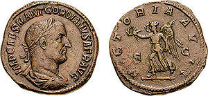 Gordian's positive reputation can be attributed to his reportedly amiable character. Both he and his son were said to be fond of literature, even publishing their own voluminous works.[24] While they were strongly interested in intellectual pursuits, they possessed neither the necessary skills nor resources to be considered able statesmen or powerful rulers. Having embraced the cause of Gordian, the Senate was obliged to continue the revolt against Maximinus following Gordian's death, appointing Pupienus and Balbinus as joint emperors.[33] Nevertheless, by the end of 238, the recognised emperor would be Gordian III, Gordian's grandson.[33]