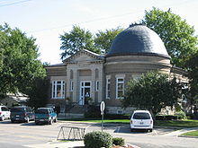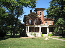 Fairbury was laid out on November 10, 1857 by Caleb L. Patton and Octave Chanute.[4] Like most Illinois towns of the 1850s, the original town of Fairbury was centered on a depot ground. It consisted of twenty-six blocks, each divided into fourteen to sixteen lots. There was no central public square, but one was later included in Marsh's addition. The plan used was virtually identical to that at Chatsworth Illinois, including the street names, and the plan very similar to that at Gridley and El Paso on the same railroad.[5]