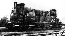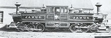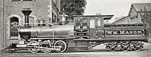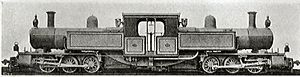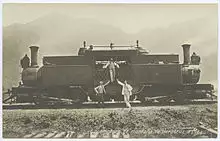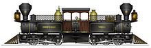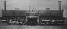 The locomotive sold in the US was ordered for the newly built Denver and Rio Grande Railroad in 1872, and was named the "Mountaineer". This was a smaller locomotive with four-wheel bogies, giving it a 0-4-4-0T configuration.[4] The railroad's experience with the locomotive was typical, and an indication of the fact that, though Fairlie had eliminated several problems of the conventional locomotive, he had introduced new ones of his own. At least one double Fairlie 0-6-6-0T (pictured above) was built by the Mason Machine Works in Taunton, Massachusetts.