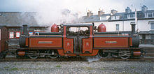 A further problem lay in the power bogies; there was a good reason for unpowered wheels on a steam locomotive, in that they served a function of stabilising the locomotive, reducing its tendency to wander or 'hunt' when rolling on straight track, and leading the locomotive into curves and thereby reducing derailments. Early Fairlies had a tendency to be rough-riding, rough on the track they rode, and more prone to derailment than they should have been. This was certainly in part true of Little Wonder, which was worn out and replaced by the FR after less than twenty years' intensive use. To a large extent the problem was not the use of power bogies but faults in their design and especially the absence of weights on the trailing ends of the bogies to counterbalance the cylinders.[14] Subsequent FR engines were much easier on the track. All FR Fairlies have had a reputation for a smooth footplate ride when compared with the original George England and Co. built 0-4-0 engines.