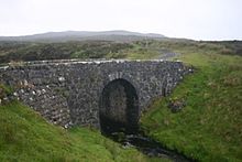 The first of these traditions related by R. C. MacLeod tells how one of the chiefs of Clan MacLeod married a fairy; however, after twenty years she is forced to leave him and return to fairyland. She bade farewell to the chief at the Fairy Bridge (which stands about 3 miles or 5 kilometres from Dunvegan) and gave him the flag. She promised that if it was waved in times of danger and distress, help would be given on three occasions.[1] A similar tradition, related by John Arnott MacCulloch, stated that although the fairy's gift had the power to save both her husband and his clan, afterwards an invisible being would come to take both the flag and its bearer away—never to be seen again.[25]