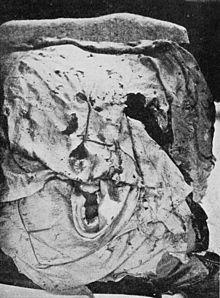 The Bannatyne manuscript states that the flag was unfurled at the Battle of Bloody Bay in 1480. The manuscript related that during the battle, the clan's chief, William Dubh (c. 1415–1480), was slain, and in consequence his clan began to lose heart. A priest then ordered the flag's bearer, Murcha Breac, to unfurl the Fairy Flag to rally the clan. Up until this point, the MacLeods of Harris and Dunvegan were on the opposing side of their kinsmen, the MacLeods of Lewis. However, once the MacLeods of Lewis noticed that the flag had been unfurled, they switched sides to join forces with their kinsmen. Unfortunately for both MacLeod clans, the outcome of the battle had already been determined and they were on the losing side. Among the vast numbers of MacLeods slain were Murcha Breac and the twelve guardians of the flag. William Dubh is buried on the island of Iona with his predecessors, and the body of Murcha Breac is placed within the same tomb. The manuscript states that this was the greatest honour which could be bestowed upon his remains.[12] R. C. MacLeod suggested that the MacLeod effigy within Iona Abbey may mark the burial of the first chiefs of the clan, as well as William Dubh, and the mentioned standard bearer.[13] William Dubh is thought to have been the last MacLeod chief buried on Iona; his son, Alasdair Crotach (1450–1547), was buried in St Clements Church, on Harris.[14]