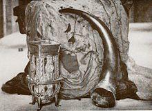 The flag was examined in the early 20th century by A. J. B. Wace of the Victoria and Albert Museum,[3] who concluded that the silk was woven in either Syria or Rhodes, and the darns were made in the Near East. It was his opinion that the flag, in its original state, would have been quite precious, possibly a relic like the shirt of a saint. The belief at the time of this examination was the MacLeods were descended from Harald Hardrada, who spent some time in Constantinople in the 11th century. In line with this belief, it was suggested that the flag may have passed from Harald Hardrada down to the eponymous ancestor of the clan—Leod.[4] The MacLeod Estate Office (Dunvegan Castle) website claims that experts have dated the flag to the 4th and 7th centuries—hundreds of years before the Crusades.[5] The flag is currently held in Dunvegan Castle,[5] along with other notable heirlooms[6] such as the Dunvegan Cup and Sir Rory Mor's Horn.