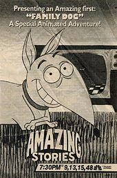 Family Dog is a short-lived animated television series that aired from June 23 to July 28, 1993, on CBS. Created by Brad Bird, the series was about an average suburban family, the Binsfords, as told through the eyes of their dog named Jonah. It first appeared as a 1987 episode of the TV series Amazing Stories, then was expanded into a series of its own.[1][2] The series was the first collaboration between executive producers Steven Spielberg and Tim Burton.