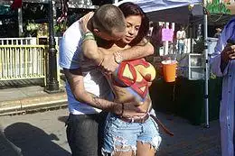 Fantasy Fest has been compared to New Orleans Mardi Gras and Carnival in Rio de Janeiro.[1] As with New Orleans Mardi Gras on Bourbon Street in New Orleans, Fantasy Fest tend to attract many people to the concentration of bars along Duval Street. Most of the event is adult oriented, however, there are family friendly events.[7] While public nudity is technically not allowed, body paint is usually very popular.[1]