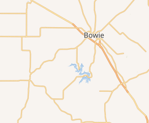 FM 1125 begins in far northeastern Jack County, at an intersection with FM 2127.[2] The two-lane route travels to the northeast, entering Montague County, and crosses the dam along the south shore of Lake Amon G. Carter. East of the lake, the roadway turns to the north and travels through unincorporated Montague County before entering Bowie. FM 1125 has a junction with the US 287 freeway and continues into central Bowie as Rock Hill Road. It turns onto Decatur Street and then Mill Street before state maintenance ends at an intersection with US 81.[1][3]