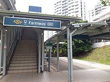 Farmway LRT station (SW2) is an LRT station on the west loop of Sengkang LRT line in Anchorvale, Singapore, located near Sengkang Riverside Park at Anchorvale Street near the junctions of Anchorvale Crescent and Anchorvale Road. It opened for passenger service on 15 November 2007 to facilitate the completion of Sengkang Sports Centre and Anchorvale Community Club within the vicinity.[1]