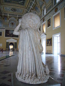The Farnese Atlas is a 2nd-century AD Roman marble sculpture of Atlas holding up a celestial globe. Probably a copy of an earlier work of the Hellenistic period, it is the oldest extant statue of Atlas, a Titan of Greek mythology who is represented in earlier Greek vase painting, and the oldest known representation of the celestial spheres and the classical constellations. The sculpture is at the National Archaeological Museum of Naples, in Italy.