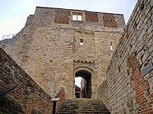 Built in 1138 by Henri de Blois, Bishop of Winchester, grandson of William the Conqueror, Farnham castle became the home of the Bishops of Winchester for over 800 years. The original building was demolished by Henry II in 1155 after 'the Anarchy' and then rebuilt in the late 12th and early 13th centuries.[1] In the early 15th century, it was the residence of Cardinal Henry Beaufort who presided at the trial of Joan of Arc in 1431. It is for this reason that St Joan of Arc's Church in Farnham is dedicated to her.[2] The castle was slighted again after the Civil War in 1648. Since then more buildings have been constructed in the castle's grounds, the most impressive being those built by Bishop George Morley in the 17th century.