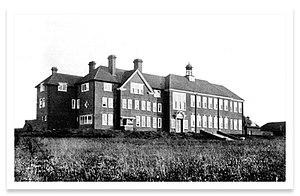 The school was housed in West Street, Farnham until 1906. It moved then because in the previous year, the town centre assets were sold in order to purchase and build a new school in fields to the south of the town.[1]