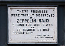 Amongst the notable buildings on Farringdon Road are the former headquarters of The Guardian newspaper at No. 119, the so-called Zeppelin Building at No. 61 built in 1917 after a Zeppelin raid during World War I, and the western side of Smithfield Market.