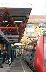 Farum station is the terminus of the Hareskovbanen radial of the S-train network around Copenhagen, Denmark. It is located about 1 km east of the old village Farum, but is the center of the modern Farum, which has grown up around the station.