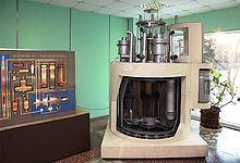 In the past, breeder-reactor development focused on reactors with low breeding ratios, from 1.01 for the Shippingport Reactor[21][22] running on thorium fuel and cooled by conventional light water to over 1.2 for the Soviet BN-350 liquid-metal-cooled reactor.[23] Theoretical models of breeders with liquid sodium coolant flowing through tubes inside fuel elements ("tube-in-shell" construction) suggest breeding ratios of at least 1.8 are possible on an industrial scale.[24] The Soviet BR-1 test reactor achieved a breeding ratio of 2.5 under non-commercial conditions.[25]