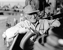 The individual primarily responsible for the development and operations of the task force was Admiral Mitscher.[5][6][N 1] The overall command of the task force alternated between two very different admirals: Raymond Spruance and William "Bull" Halsey. Spruance was calculating and cautious, while Halsey was more aggressive and known for taking risks. Most higher-ranking officers preferred to serve under Spruance; most common sailors were proud to serve under Halsey.[7] Their commander was Admiral Chester Nimitz.