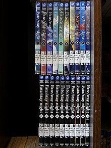 The Fate/stay night manga adaptation, illustrated by Datto Nishiwaki, was serialized in Kadokawa Shoten's manga magazine Shōnen Ace between the February 2006 and December 2012 issues. The manga combines the Fate and Unlimited Blade Works scenarios of the visual novel as well as some elements from the Heaven's Feel scenario while ultimately following the Fate scenario. Twenty tankōbon volumes were released in Japan between May 26, 2006 and November 26, 2012.[36][37] The manga was licensed for an English-language release in North America by Tokyopop in 2007.[38] In April 2011, Tokyopop announced that they were shutting down their North American manga publishing division, and volume 11 became the last volume to be released by Tokyopop. In 2014, Viz Media's Viz Select imprint released the first ten volumes of Fate/stay night manga digitally.[39] A second Fate/stay night manga based entirely on the Heaven's Feel route and illustrated by Task Ohna began serialization in the June 2015 issue of Young Ace.[40]