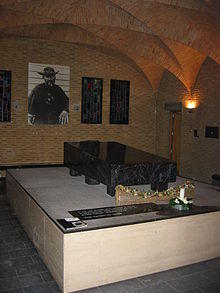 In January 1936, at the request of King Leopold III of Belgium and the Belgian government, Damien's body was returned to his native land in Belgium. It was transported aboard the Belgian ship Mercator. Damien was buried in Leuven, the historic university city close to the village where he was born. After Damien's beatification in June 1995, the remains of his right hand were returned to Hawaii and re-interred in his original grave on Molokaʻi.[31][32]