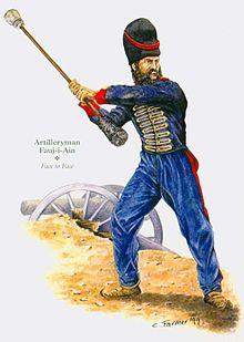 The Fauj-i-Khas was a brigade of the Fauj-i-Ain section of the Sikh Khalsa Army of Punjab. It consisted of very experienced elites and had separate flag and emblem. It was strictly disciplined on French pattern. All the equipment and weapons were of the best type. It grew to be the best organised section of the regular army (Fauj-i-Ain)