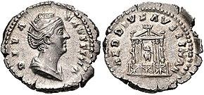 Ten years after Faustina's death, a new commemorative coinage was introduced, featuring the legend Aeternitas ('eternity'); such coins may have been introduced to be distributed at a public ceremony in her memory.[51]