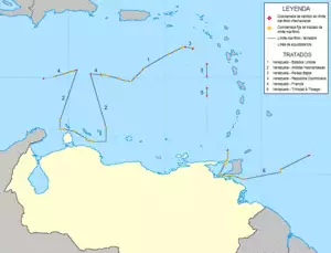 - ^ República de Venezuela y República Dominicana. 1981: Tratado de relimitación de áreas marinas y submarinas entre la República de Venezuela y República Dominicana. Ministerio de la Defensa. Caracas. 8p.