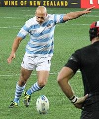Felipe Contepomi (born 20 August 1977) is an Argentine rugby coach who is currently the backs coach at Leinster Rugby. He was a rugby union footballer who played fly-half or centre; his last club was Club Newman, in the first division of the URBA championship. He was also a key player for Argentina, having played 15 years for the national team. His twin brother Manuel was also a Puma. In June 2015 he was appointed coach of Argentina XV. Contepomi was inducted into the World Rugby Hall of Fame in November 2017.[4]