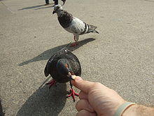 Other predators of the pigeon have been recorded, including sparrowhawks, crows and seagulls.[37][38][39] Great white pelicans have also been recorded killing and consuming pigeons in St. James's Park, despite alternative food sources being available.[40][41]