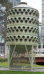 When eggs are removed in artificial pigeon houses, the interval between reproductive attempts is strongly reduced, which reduces the efficiency of the method.[49] Dummy egg nesting programs have therefore been tested in some cities with mixed results. There, the eggs are removed and replaced with dummy eggs. The real eggs are then destroyed. One such structure, in Batman Park in Melbourne Australia, was unsuccessful in attracting pigeons and has since been removed.[50][51] The loft used in Melbourne is on stilts, with a cage door allowing access from beneath for accessing the structure at night when the pigeons are asleep.