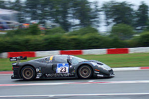 On September 2009, Glickenhaus announced his intention to race a new version of the P4/5 in the 2010 24 Hours Nürburgring. The car, called the SCG P4/5 Competizione, would not be a conversion of his road car but instead an entirely new car with a Ferrari chassis, VIN and drivetrain, made under Glickenhaus's own car brand Scuderia Cameron Glickenhaus. On May 2010 however, it was revealed that the Competizione would in fact be raced in 2011, based on a 430 Scuderia. It would be built to FIA GT2 standards and raced by Scuderia Cameron Glickenhaus in an Experimental Class under the direction of Paolo Garella, former Head of Special Projects at Pininfarina. Ferrari completely distanced themselves from the SCG P4/5 Competizione project in 2011, refusing to sell the team parts for vital engine rebuilds between races.[9] The car finished 39th in the 2011 24 Hours Nürburgring (after bursting into flames) and in 2012 won its class and finished 12th overall.[10]