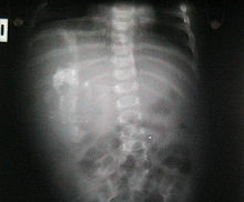 There are two theories of origin concerning "fetus in fetu". One theory is that the mass begins as a normal fetus but becomes enveloped inside its twin.[2] The other theory is that the mass is a highly developed teratoma. "Fetus in fetu" is estimated to occur in 1 in 500,000 live births.[3]
